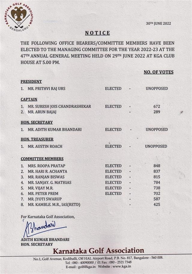 MANAGING COMMITTEE ELECTION RESULTS 2022-2023