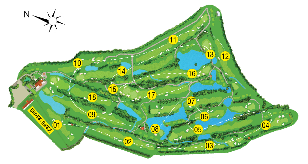 Golf enthusiasts created this 125 acre oasis from the old Chalaghatta swamp. A 7219 yard par 72 course of Peter Thompson design, it currently has a slope rating of 137 off the championship tees. The fairways of Hybrid Bermuda tiffway lead to true-running greens of Bermuda Tiff Dwarf, the general grain on the greens is westerly except where the ponds lie near. The greens are usually on the fast side with stimp meter reading above ten during tournaments. Prevailing winds are south westerly June to August but north easterly the rest of the year. All Out-of-Bounds areas are fenced and clearly marked white stakes.